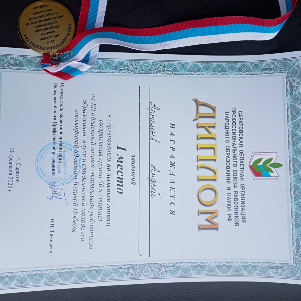 28 февраля 2025г на базе лыжного стадиона «Зимний» в рамках Всероссийского движения и Федерального проекта «Профсоюз-территория здоровья» команда лыжников, членов Профсоюза Новоузенского района приняла участие в лично-командном первенстве по лыжным гонкам в XII областной зимней спартакиаде работников образования, науки и студенческой молодёжи, посвящённой 80-летию Великой Победы. Как и в прошлом году Артемьев А.В. в своей группе занял 1 место и был награждён медалью и дипломом. Остальные участники успешно финишировали. Остальные участники успешно финишировали. Все участники получили хорошую спортивную нагрузку, проверили свою силу и выносливость, а также получили массу приятных эмоций.